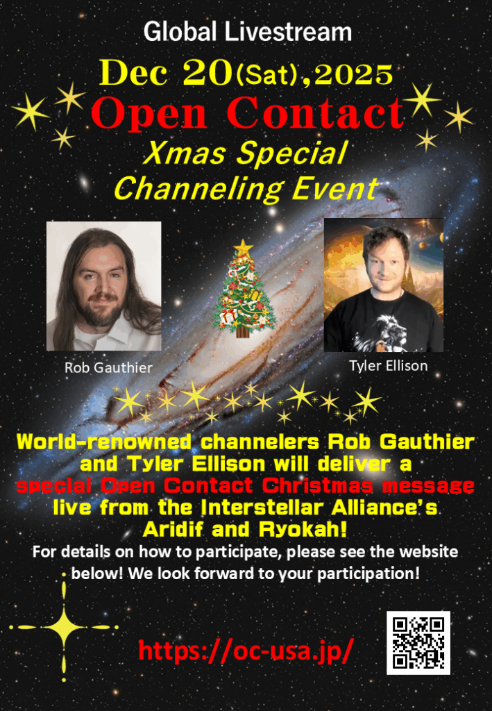 🎄Two world-renowned channelers, Rob Gautier and Tyler Ellison, will deliver a live Christmas Special Message from the Interstellar Alliance beings Aridif and Ryokah, sharing insights on Ascension and Open Contact!