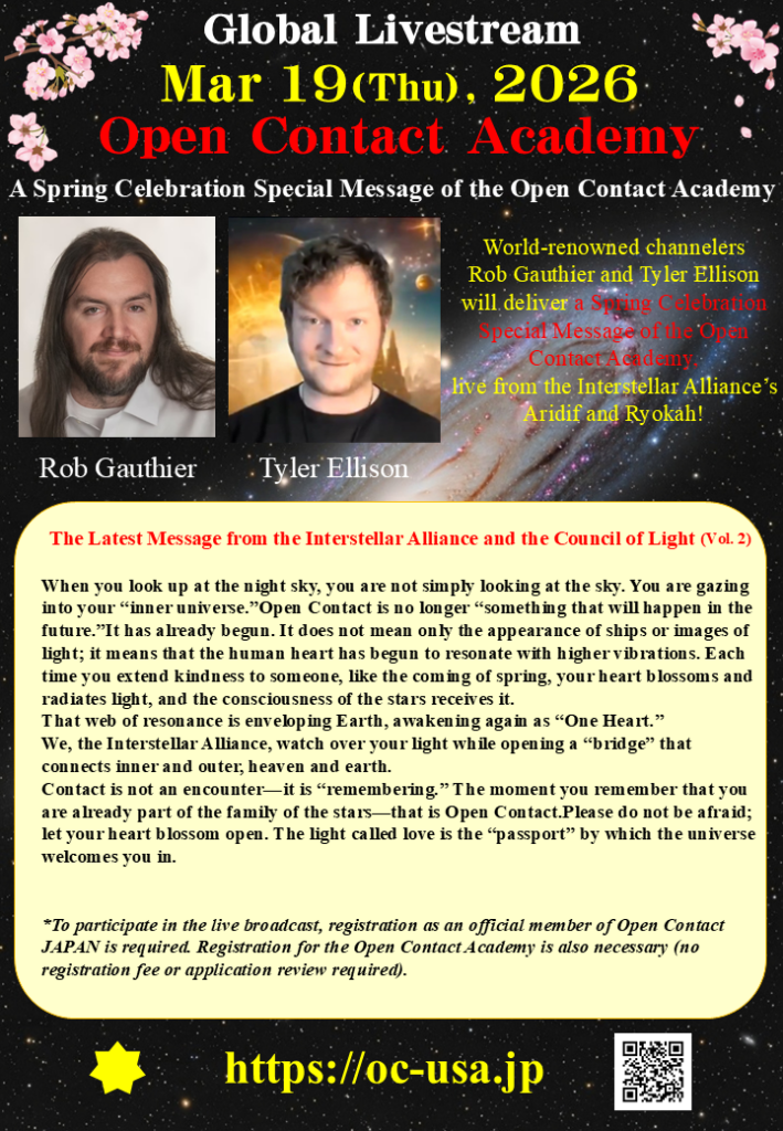 On Thursday, March 19, 2026, the Open Contact Academy Spring Celebration by the Interstellar Alliance will be held in Japan and broadcast live worldwide!